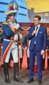 Der geschäftsführende Vorstand hatte im Vorfeld lange überlegt, in welcher Form die Prinzengarde sich für die jahrelange Unterstützung bei Matthias bedanken könnte. So war man sich schnell einig, dass das aktive Korps zu Ehren von Matthias auf jeden Fall in Uniform einmarschiert und Matthias auf der Bühne zum Ehrenmitglied ernannt werden soll.